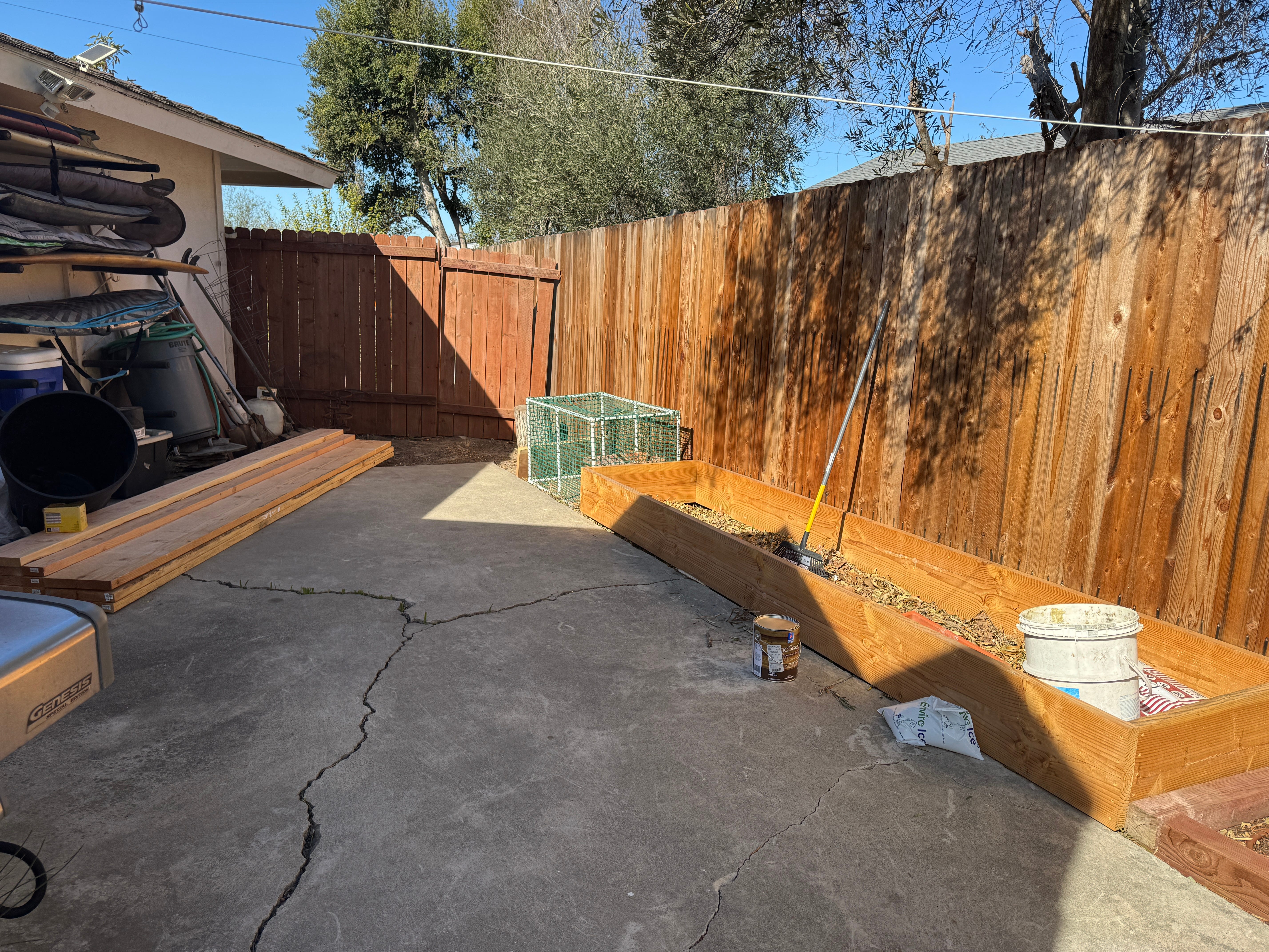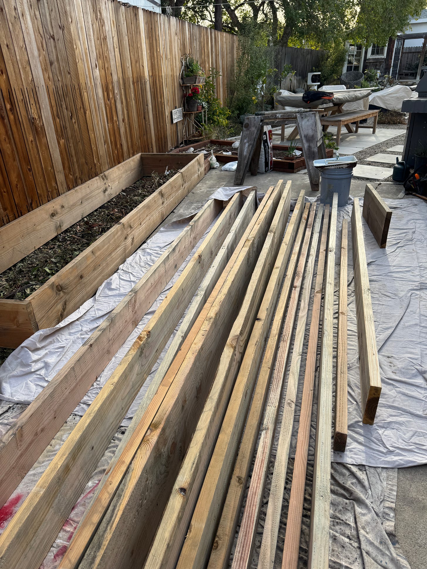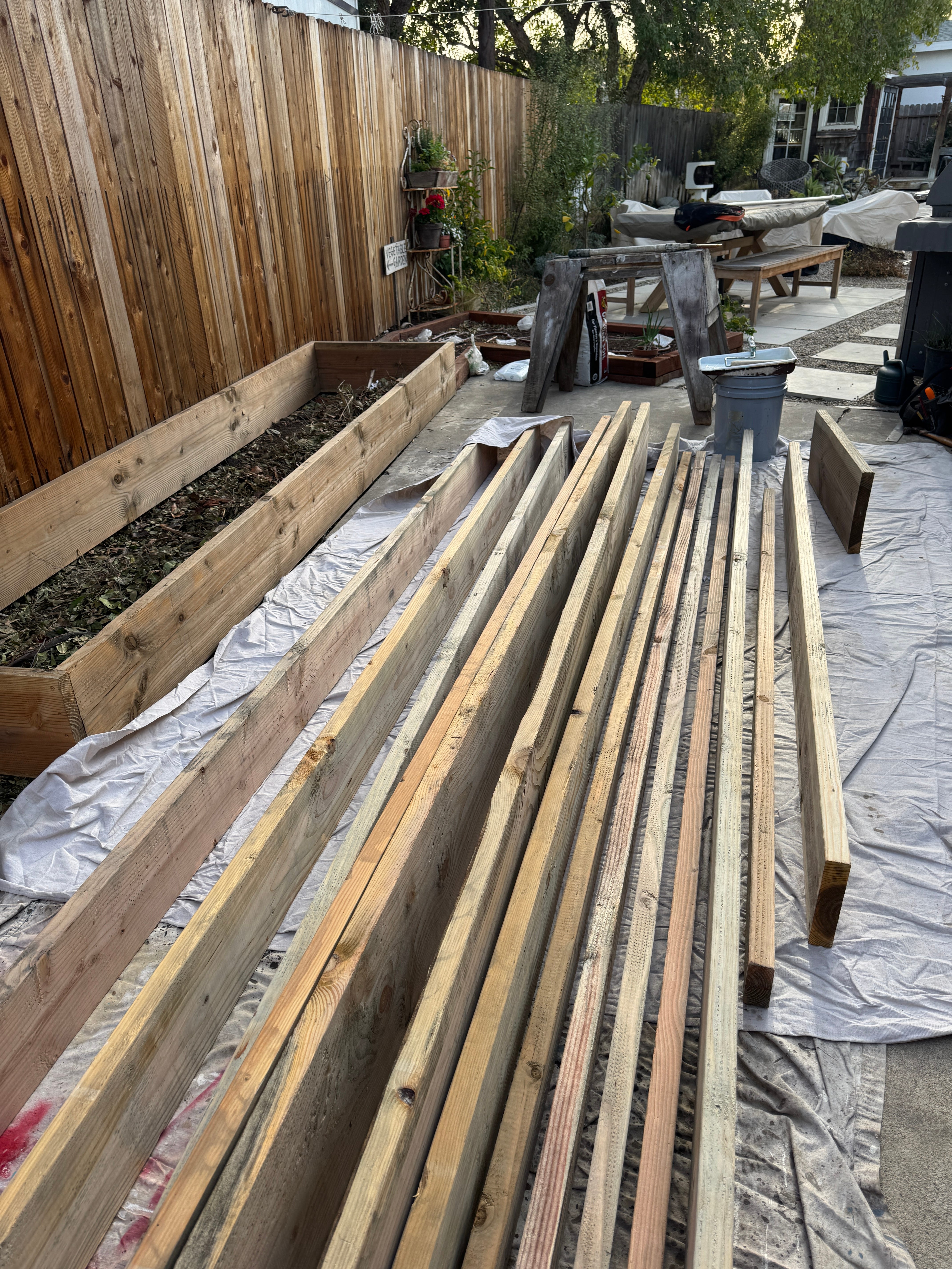 まずは新しくデザインしたRaised bedを作るために材料を買い、専用のオーガニックウッドシーラーで木材が長持ちするよう下準備。