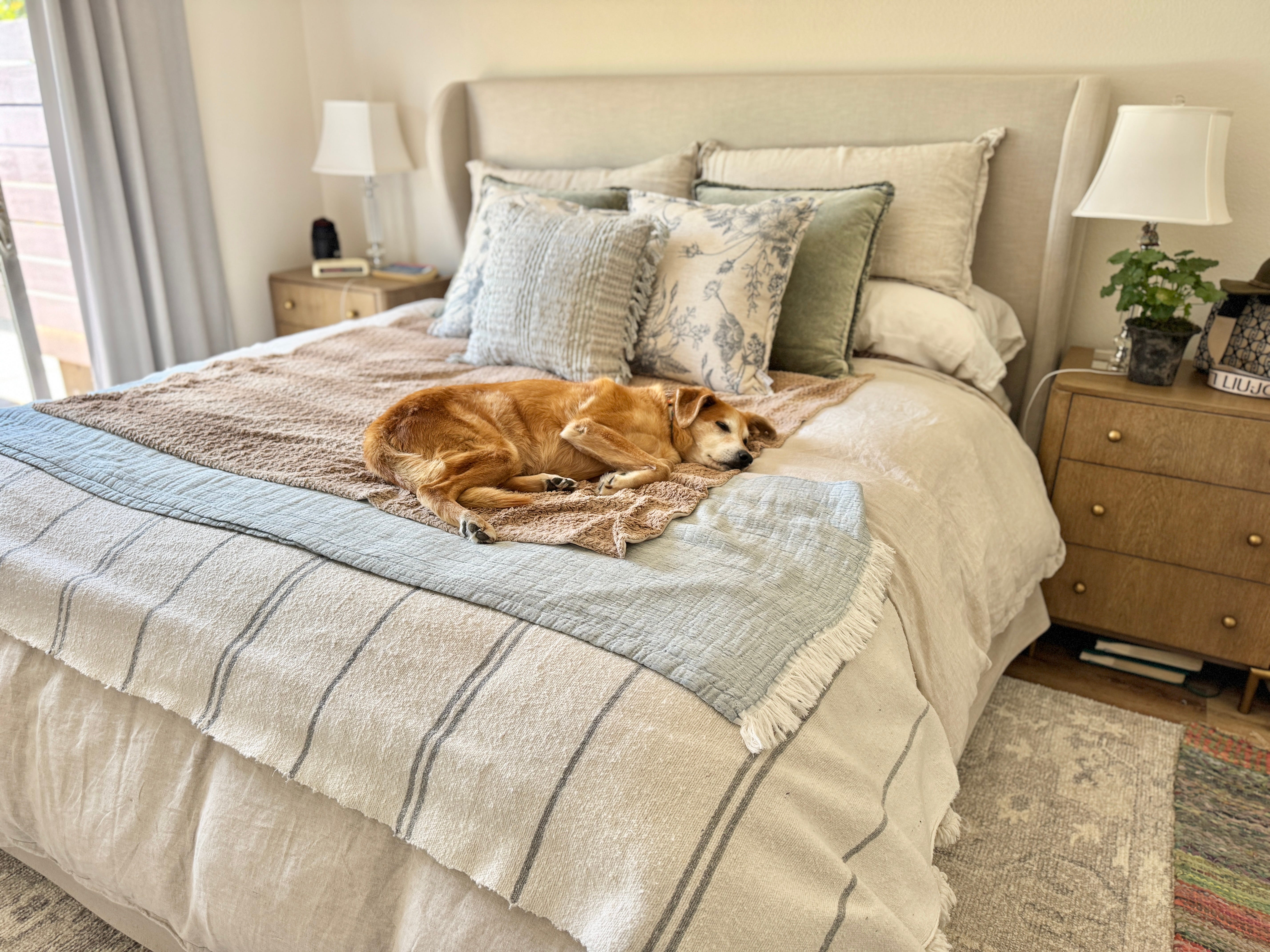 今回はベッドリネンも全て買い替え、ずっと欲しかった麻質のものを購入。ずっと買いたいと思っていたものはシーツセットだけでも$800くらいするので迷いましたがなんと、格安で同じクオリティーのものを見つけました!