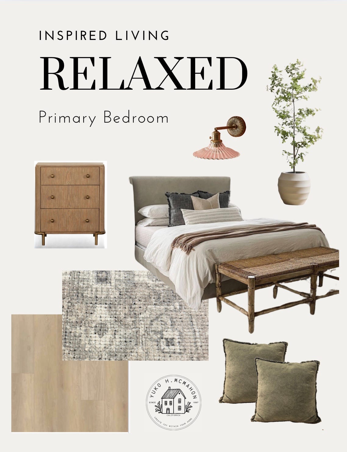 1日の初めに目に入る景色で1日の終わりを過ごす場所でもあるのでここが整ってると1日が気持ち良く始められるものです。部屋を丸ごと変える時、私はまずピンタレストでアイデアを集めて、自分なりにムードボードを作ります。ムード的にはこんなイメージを考えていました。